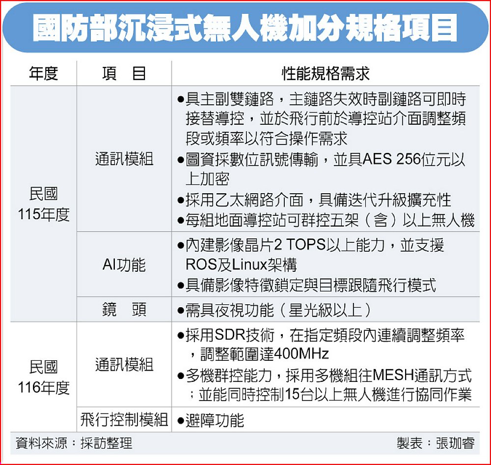 葉儀晧分析,明年國防部的無人機訂單,將夜視功能、影像晶片達2Tops以上列為加分項目,後年則會列入避障功能,義隆電皆已提前布局。