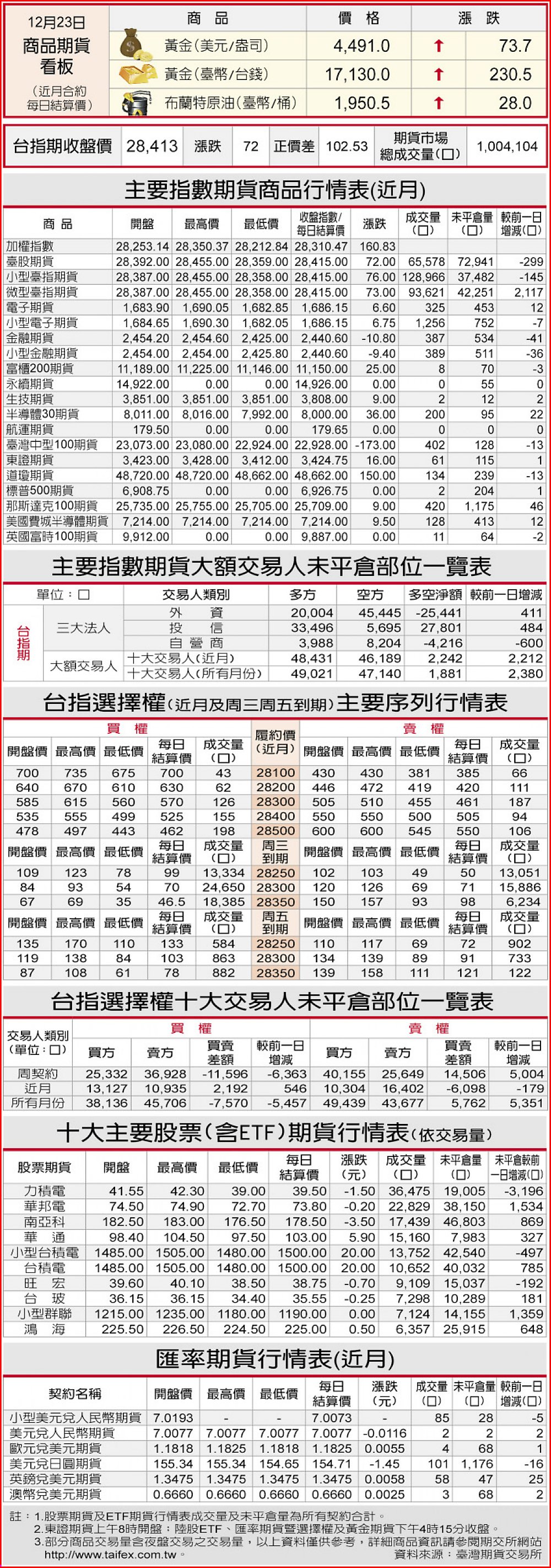 期貨商品行情表