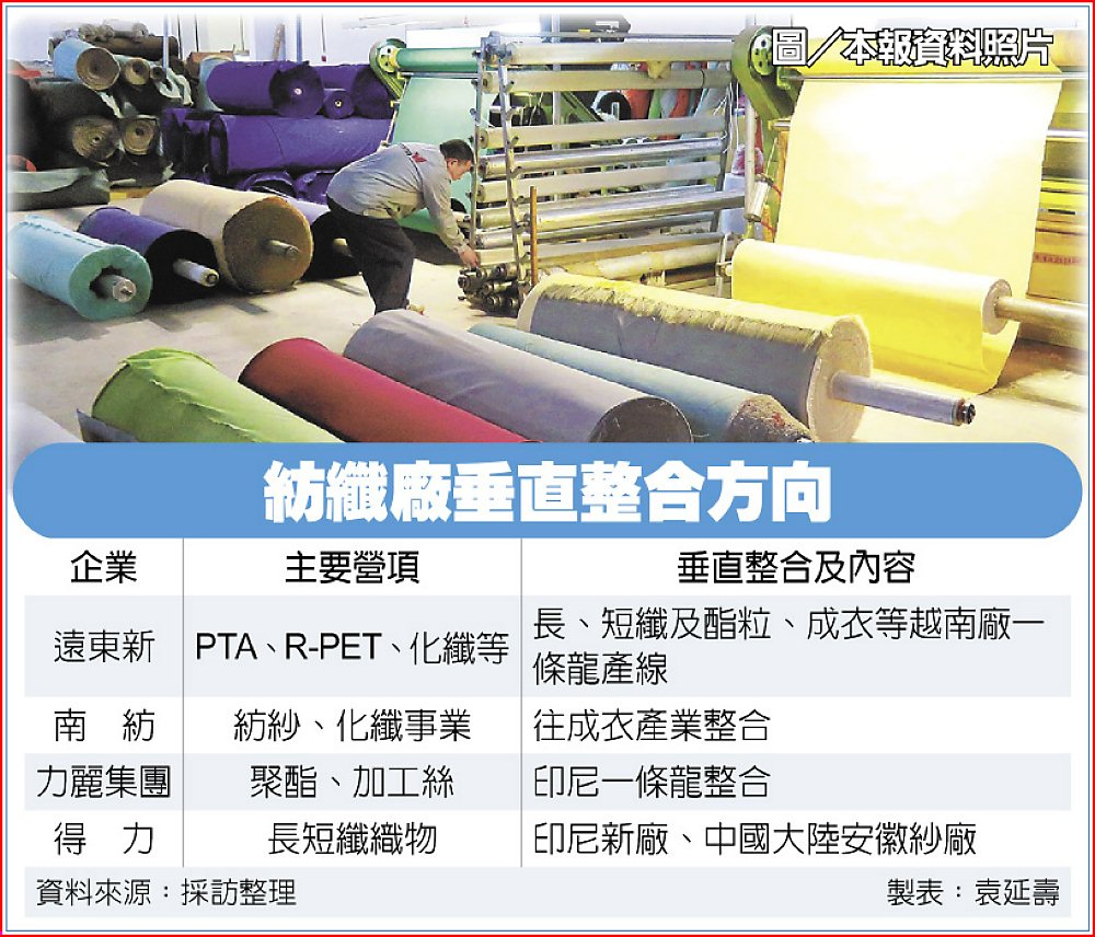 南紡已在評估,在越南或印尼,與國內中下游紡纖廠進行合作、或尋找在地企業合併,完成南紡向下游產業領域擴充的布局。