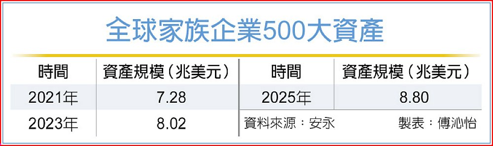 安永與聖加侖大學共同發布的2025年「全球500大家族企業指數」顯示,全球500大家族企業總營收已達8.8兆美元,較前一次(二年前)調查大增8,000億美元。安永聯合會計師事務所指出,指標性家族企業要加速成長動能,前進資本市場與併購兩大策略是關鍵。