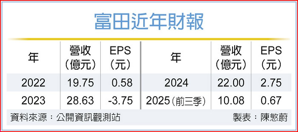 法人推估,富田在第三季轉盈後,2025全年應可維持獲利無虞,2026年更將受惠新能源車包括純電車及油電車皆有新單,再加上跨無人機及機器人領域有成,皆將於2026年逐步出貨,富田將邁入新一波高成長循環,估2026年營收年增將逾30%。