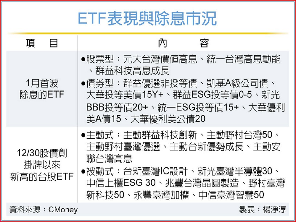 考量1月1日元旦休市,想參與多檔ETF第一波除息的投資人,最後買進日為12月31日。