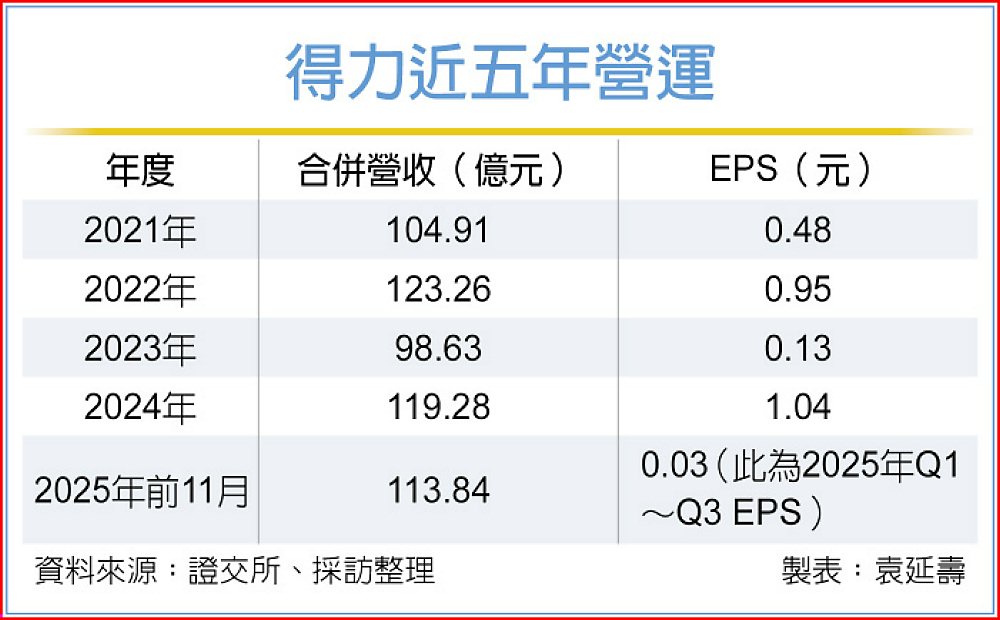 得力指出,海外擴產的策略目標,是建立多區域產能布局、分散地緣政治與營運風險;市場指出,在得力產能布局做策略性調整後,及新產能2026年陸續上線投產,預期2026年營收可望因此有兩位數成長。