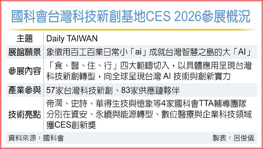 國科會台灣科技新創基地(TTA)31日舉辦CES 2026展前記者會,本次TTA館以「Daily TAIWAN」為主題。行政院政委兼國科會主委吳誠文表示,AI新十大建設最終要達到的目標是全民智慧生活圈,呼應這次主題願景,新創團隊不再強調是供應鏈的一環,而是創新應用,要做到系統價值才會高。