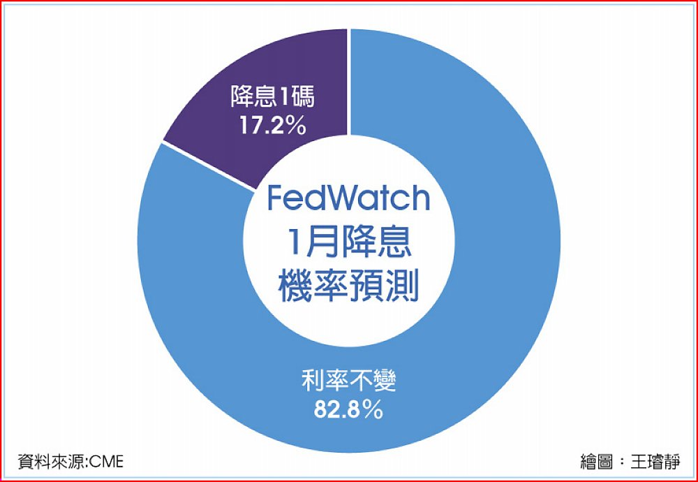芝商所FedWatch工具31日顯示,Fed在2026年1月降息1碼的機率不到2成,利率不動的機率超過8成。