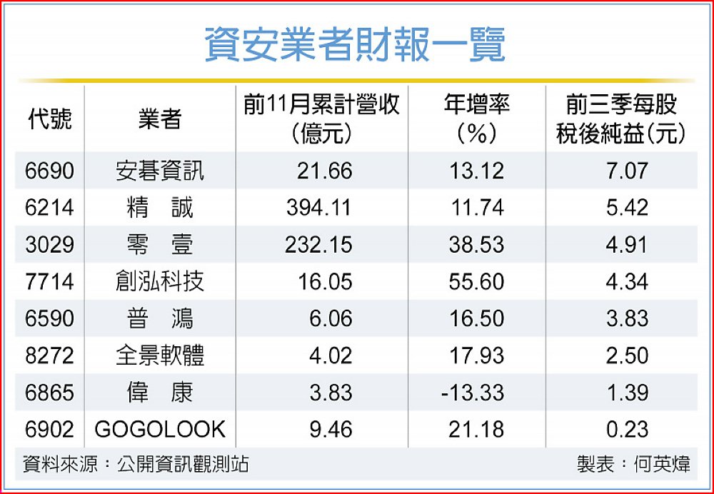 2025年營收可望創新高的軟體及資安業者,包括零壹、精誠、安碁資訊、創泓科技、Gogolook、普鴻、叡揚、邁達特等,法人表示,在AI需求不斷驅動下,2026年成長值得期待。