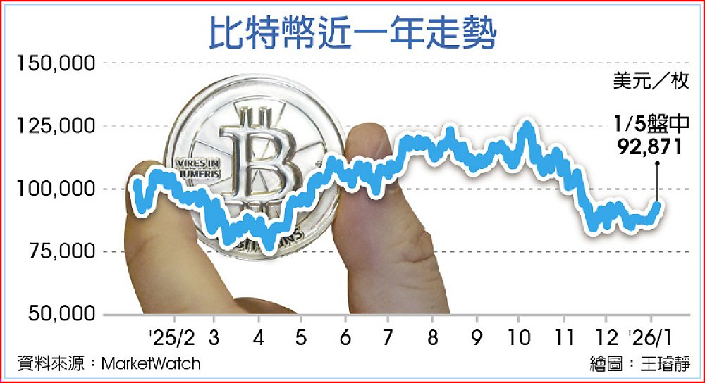 CoinDesk網站顯示,比特幣在5日盤中衝上9.3萬美元後,回落到92,871美元,過去24小時內漲幅1.4%。以太幣也小漲0.7%至3,168美元,其他諸如瑞波幣、Solana等主流代幣同步走揚。而這波上漲有部分來自年初資金重新配置,因加密資產相較股市與貴金屬仍明顯低於歷史高點,具備「相對價值」吸引力,但主要是地緣政治因素成為催化劑,因為美國政府將委國總統馬杜洛拘押的消息,短線推升市場對風險資產的交易熱度。