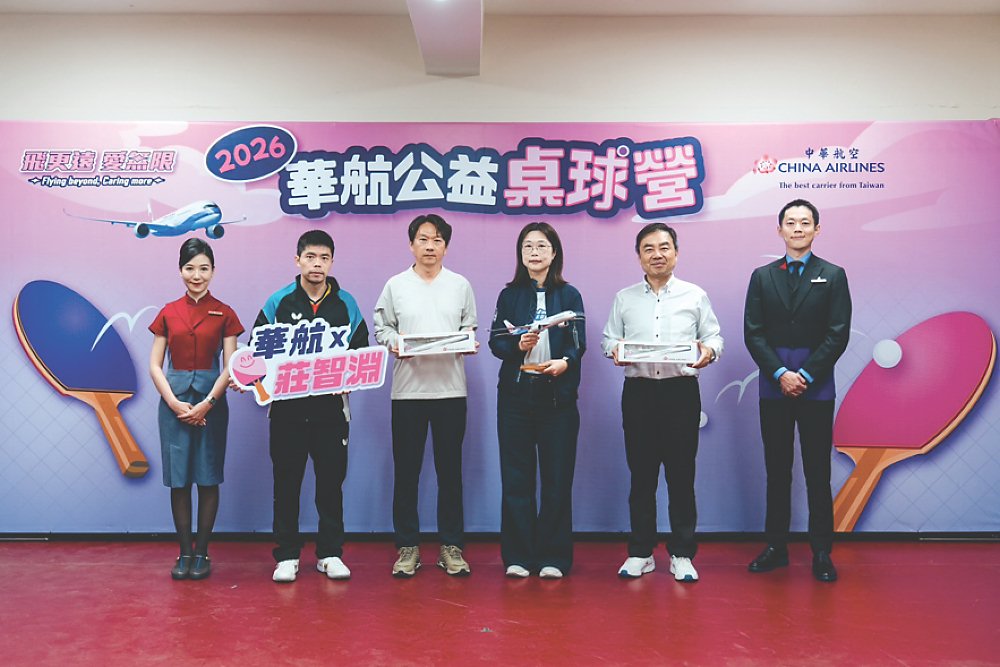 中華航空5日三度舉辦公益桌球營,首次移師彰化,由資深副總經理羅雅美開訓,邀請台灣桌球教父莊智淵親臨指導,陪伴在地學童揮拍學習,以運動為新的一年注入正向能量,也為孩子們種下勇敢追夢的希望,藉由公益行動揭開熱血序幕。