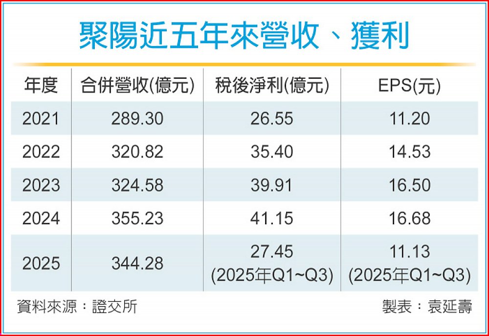 整體來看,聚陽表示,2025年第四季接單轉佳,目前能見度已達第二季,加上2026年有世足賽等大型國際運動賽事的激勵,以及關稅底定,成本轉嫁,預期2026年營運可望優於2025年。