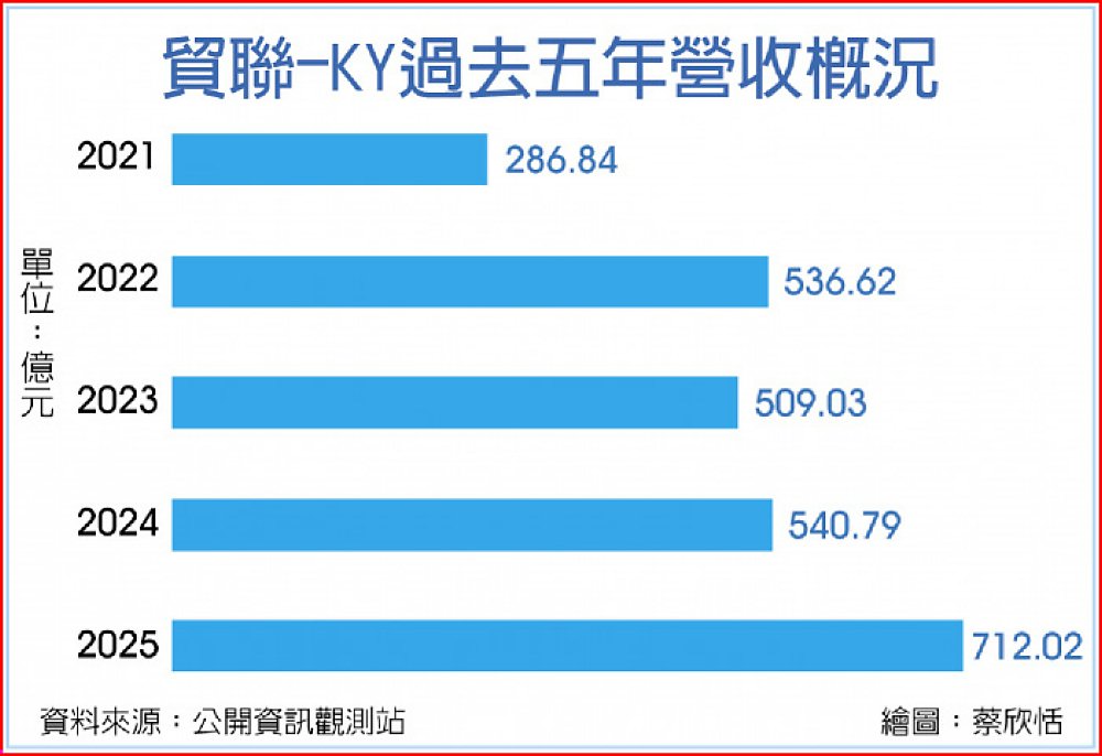 貿聯公告,2025年12月營收66.41億元,為單月營收歷史次高紀錄,月增1.56%、年增43.06%,累計2025年第四季營收則連續第四季創高,繳197.62億元營收成績單,季增7.4%、年增37.24%,累計貿聯2025年營收飛越700億元大關,以712.02億元締造營收高峰。