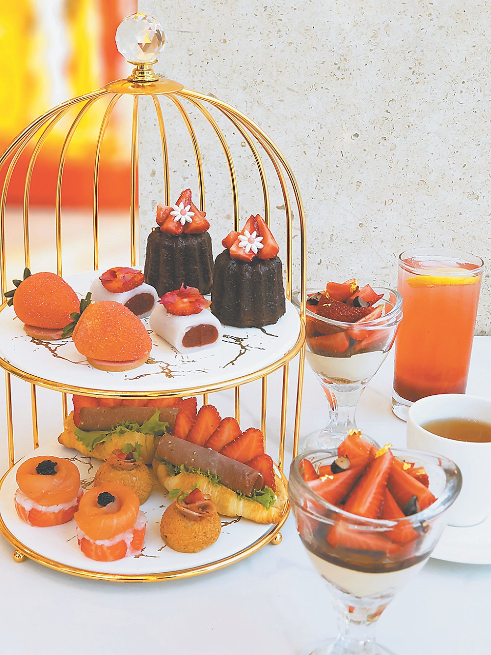 鹹點部分則以創意組合展現草莓多元風貌,包括草莓燻鴨胸泡芙、草莓燻鮭壽司與黑胡椒牛肉草莓可頌,巧妙揉合果香與鹹食風味,令人驚艷。飲品可選精選茶款、無酒精咖啡或氣泡飲,為午茶畫下完美句點。