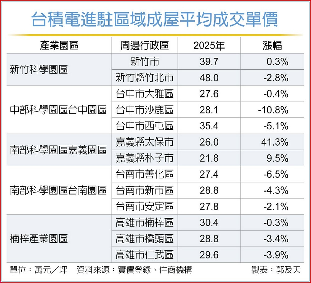 在這波科技園區房市盤整潮中,南部科學園區嘉義園區周邊行政區房價卻逆風飆升,其中嘉義縣太保市2025年平均房價較前一年大漲41.3%,朴子市也上漲9.5%。