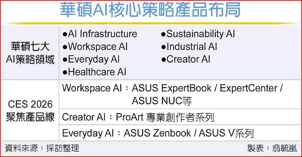 華碩此回CES則聚焦於Workspace AI、Creator AI與Everyday AI三大領域,預計首波新品最快有機會於1月底、2月初上市。