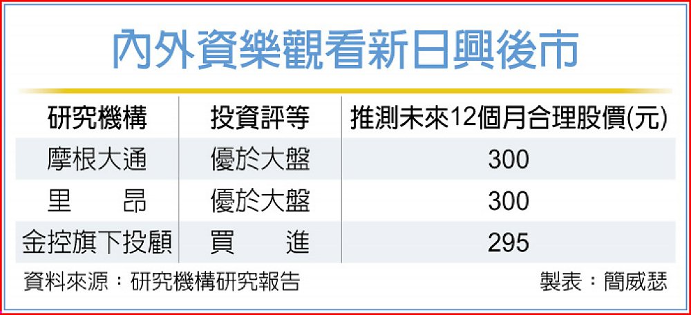 外資估計,新日興2026年每股將賺進一股本,每股稅後純益(EPS)10.05元,比前一年度足足多出500%以上,2027年獲利動能依然亮眼,EPS將會年增74%、達17.49元,也就是說,新日興已經邁入營運爆發期。