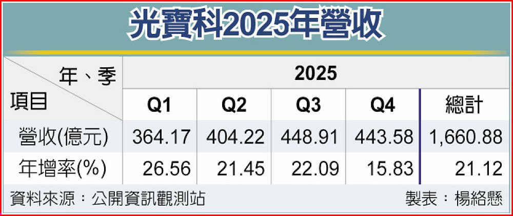 展望2026年,除既有產品持續放量外,光寶科110kW Power Shelf、400V Power Rack及液冷系統已於去年第四季小量出貨,屬於新一代高功率與系統級電源解決方案,相關新品於2026年進入明確放量階段。隨光寶科AI相關營收比重持續拉升,法人預估,2026年相關比重將超過25%,有望進一步推升營收與獲利表現。