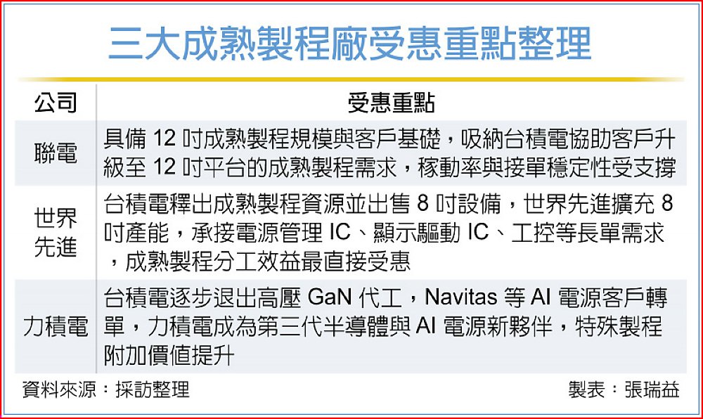 業界解讀,隨著台積電把資源往先進製程與先進封裝集中,成熟製程的供給結構勢必重整,轉單外溢將成為台系成熟代工廠的重要成長來源。