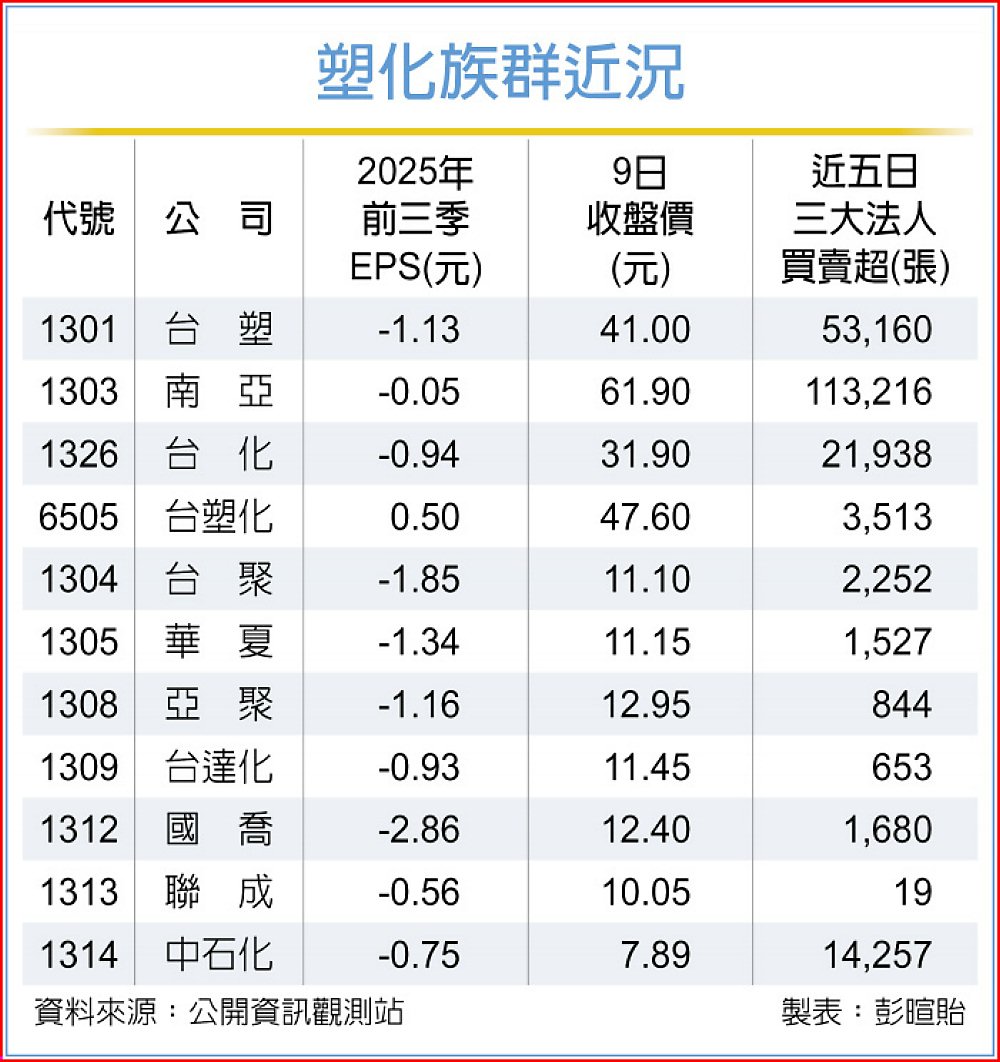 塑化族群虧損包袱減緩,且中、美、台、日、韓石化廠持續減產救市,運作效益提振,2026年在油價趨緩、政策經濟刺激及強化多元市場、差別化應用策略推展下,廠商多預期營運可望擺脫營運谷底。