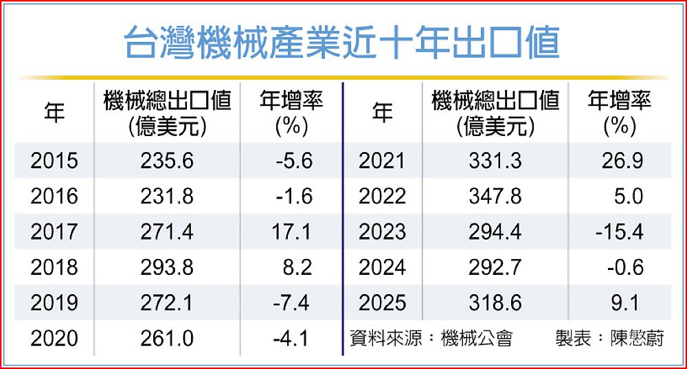 相較於機械出口增溫,工具機卻在匯率劣勢及低價競爭影響下,2025全年出口值僅20.04億美元、年減9.6%,創自2009年全球金融危機以來的新低紀錄。