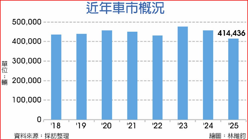黃南光則認為,2025年國內車市受到大環境不確定性影響而有所壓抑,2026年不確定因素消弭,加上各廠新車競出與政府補助加碼,應可推升各廠銷量看增,因此推估車市最好應可回到44萬輛。