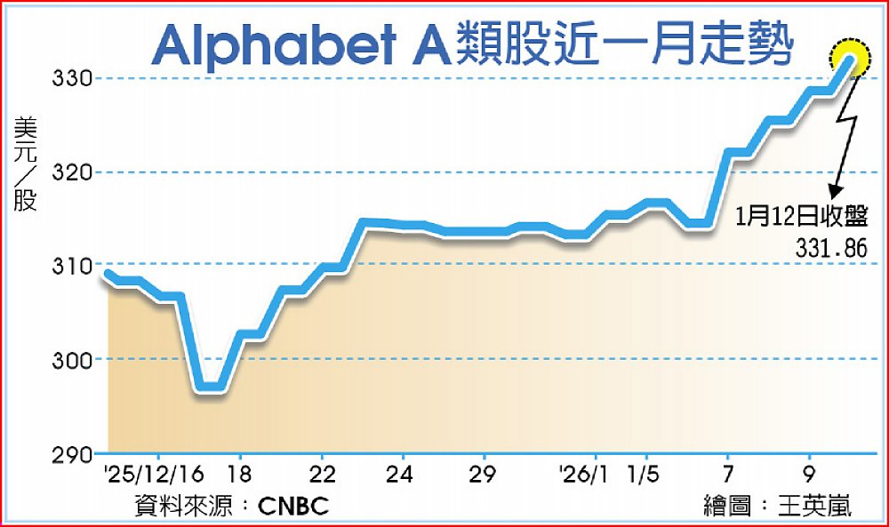 Alphabet出色的AI模型Gemini 3不僅獲得市場肯定,更助其股價去年飆漲65%,為「美股七雄」(Magnificent Seven)中表現最優,在上周更是自2019年以來首度在市值上超越蘋果,成為全球第2大上市公司。