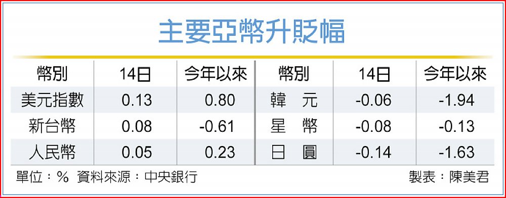 台股14日氣勢如虹、續飆新高,吸引熱錢小幅回流,新台幣匯率早盤在壽險、投信全都進場買匯下,最低貶至31.706元,後在出口商拋匯與熱錢匯入後翻升,終場升值2.6分,收在31.63元,終止連五貶,匯市交投熱絡,總成交量突破20億美元,高達22.52億美元。