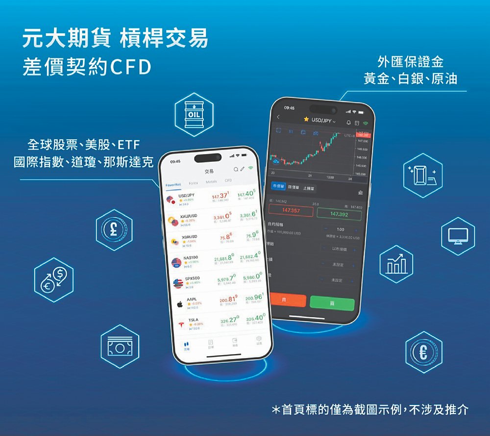 在商品與功能面向上,「元大槓桿全球贏家」平台涵蓋匯率、黃金白銀等貴金屬、原油等能源商品,並提供逾百檔美股CFD,協助交易人因應國際事件、產業輪動及市場波動進行策略配置。CFD具備低進場門檻、槓桿彈性與多空雙向操作特性,搭配彈性交易量手數設計,讓不同資金規模的交易人皆可依自身風險承受度進行布局;同時,該平台亦提供專業級API交易介面,支援自動化策略與量化模型串接,滿足進階交易人對策略執行效率的需求。元大期貨表示,未來將持續優化平台技術、擴充商品深度並強化風險管理架構,協助交易人更有效掌握全球市場機會,穩健提升跨資產配置的靈活度與操作效率。
