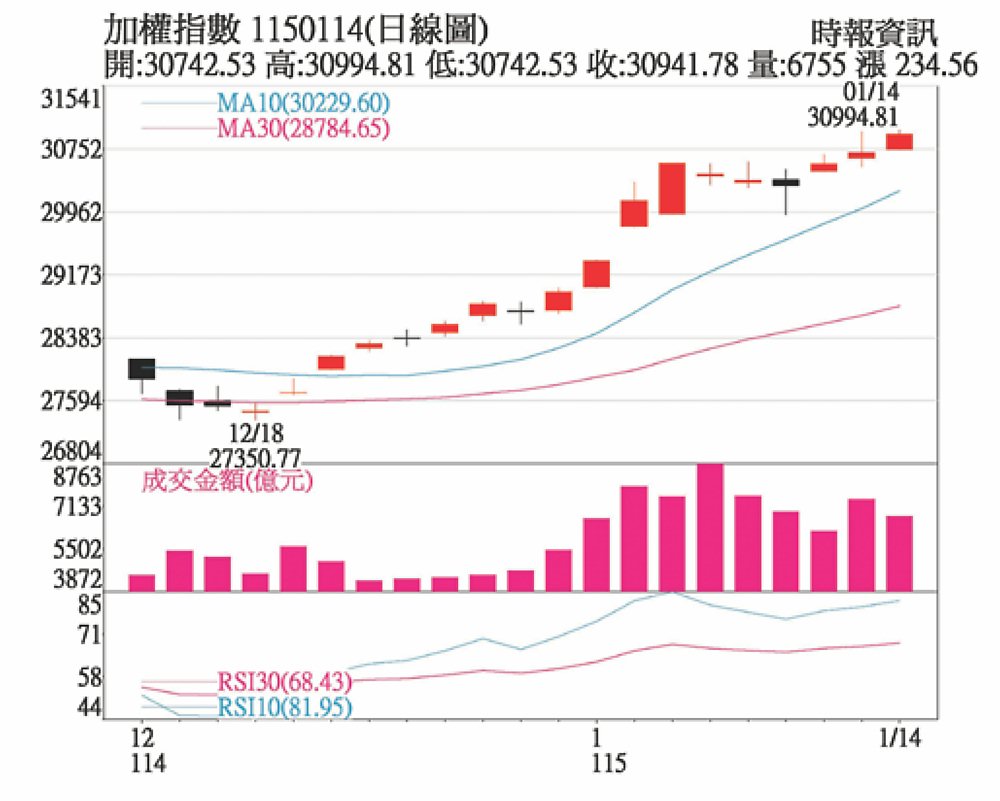 將目光轉回國內,財政部公布12月進出口貿易數據,單月出口金額達624.8億美元,儘管出口金額較上月高峰略為放緩月減2.5%,然在AI應用持續擴散、國際大廠資本支出積極背景下,年增率仍高達43.4%,連26個月維持正成長,顯示出口動能仍處於高檔水準。隨2026年初訂單陸續開出,本季出口成長動能可望延續,為台股基本面提供穩定支撐。
