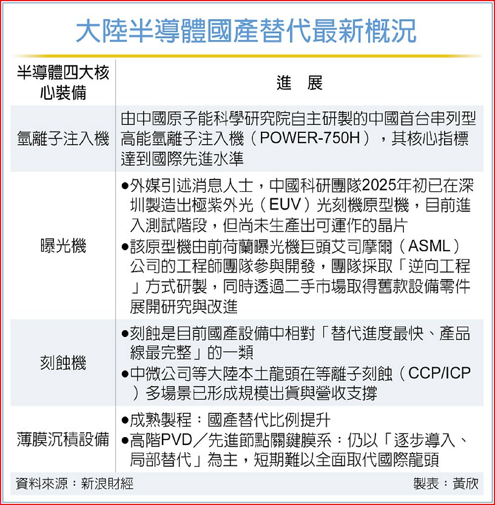 業界分析稱,POWER-750H與EUV原型機的先後突破,顯示大陸正加速推進在核心半導體裝備的國產化進程。