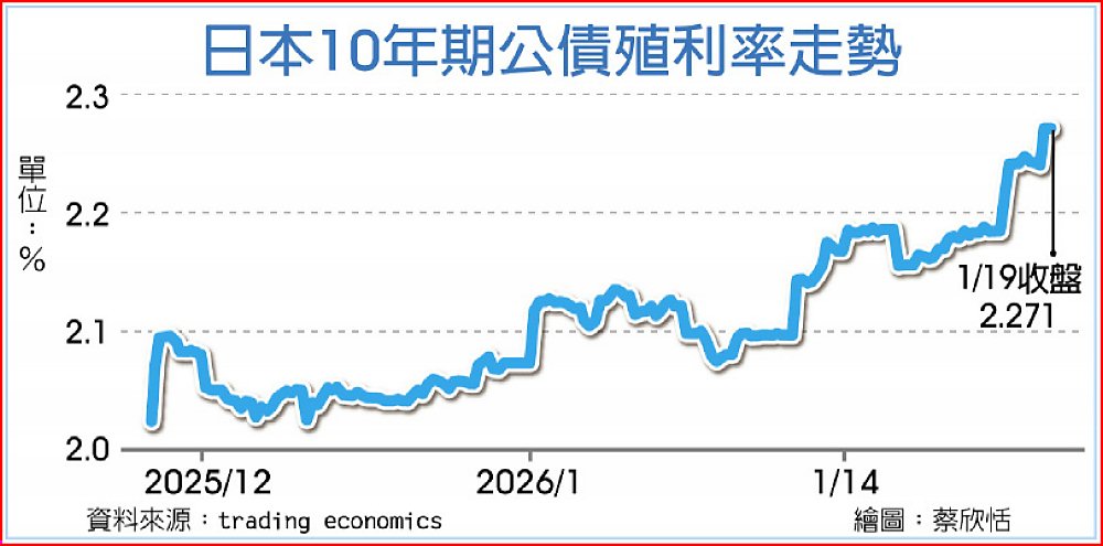 此外日圓兌美元匯率自上周貶至159.45日圓兌1美元、創逾一年新低後,近來逐漸反彈,19日盤中兌美元續升近0.1%,主要歸因於川普要取得格陵蘭的態度愈趨強硬,增加市場對日圓的避險需求。