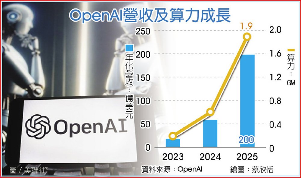 OpenAI財務長佛萊爾(Sarah Friar)在部落格文章發布營收突破200億美元的消息,並表示OpenAI的算力已從2024年的0.6GW提升至2025年的1.9GW,並且每周及每日活躍用戶數持續創新高。