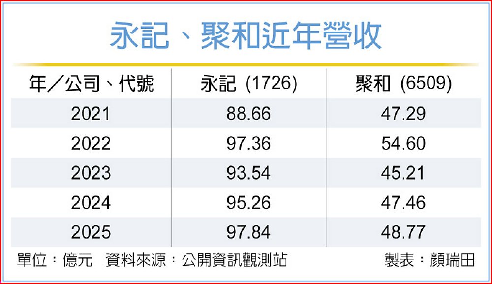 台灣產業營運呈現「科技好,傳產壞」的K型結構,但是傳產公司只要搭對科技列車,表現仍將突出。受惠台積電等科技大廠新建廠房的塗裝需求,永記造漆(1726)2025年營收至97.84億元新高,聚和(6509)受惠生物科技領域原料需求,2025年營收48.77億元,創歷史次高。