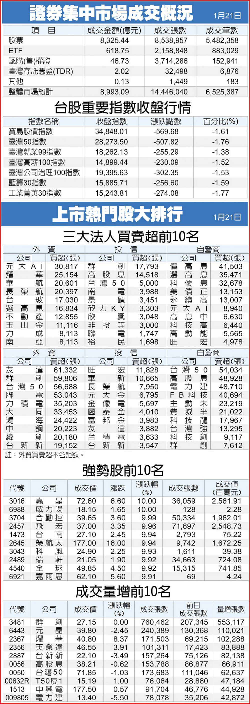 證券集中市場成交概況、上市熱門股大排行
