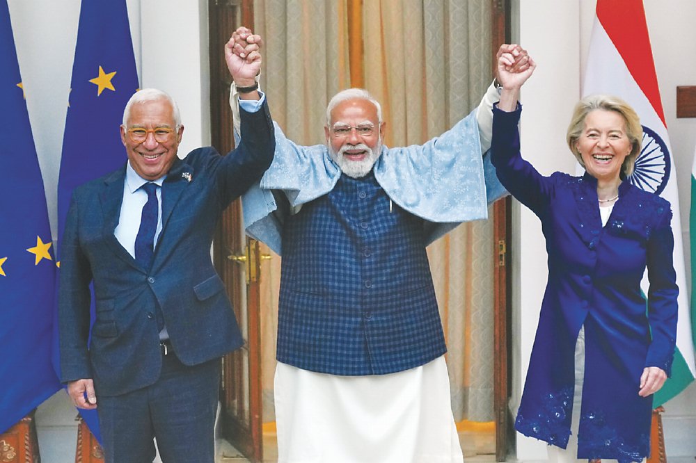歐盟執委會主席范德賴恩(Ursula von der Leyen)與歐洲理事會主席科斯塔(Antonio Costa)在訪問印度期間,敲定這份歷經多年談判的貿易協定。 歐盟表示,協議將消除或降低歐盟超過90%商品的關稅,每年可望為企業節省48億美元關稅成本。