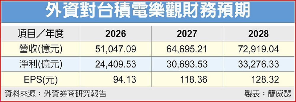 里昂證券指出,先進製程產能從投資到實際量產所需時間正在拉長,台積電得益於定價改善與毛利率上行趨勢,評價面將愈來愈與輝達靠攏,把推測合理股價一口氣拉上史無前例、令市場驚呼連連的3,030元,甚至隱含台股飛越4萬點期待。