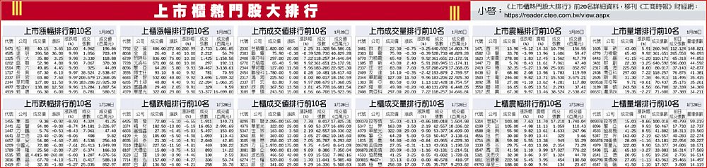 上市櫃熱門股大排行