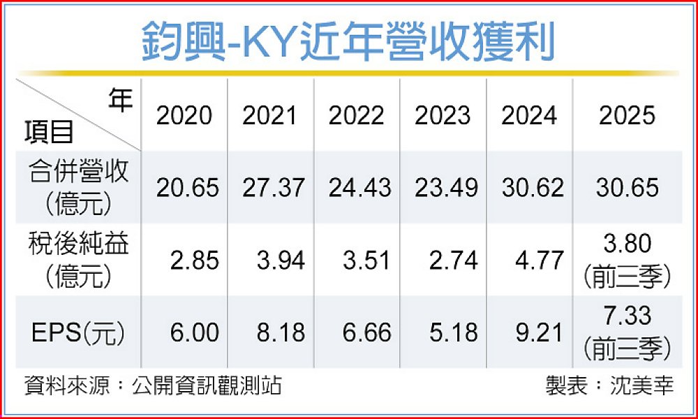 鈞興2025年合併營收30.65億元創新高,年增0.1%。鈞興表示,美國總統川普2024年11月當選後,美國客戶擔憂進口關稅將提高,因此從2024年11月提前拉貨,帶動鈞興2024年11月~2025年1月電動工具及園林工具齒輪、齒輪箱出貨大幅增加,墊高比較基期,目前看來,1月出貨可能與去年同期略減或持平。