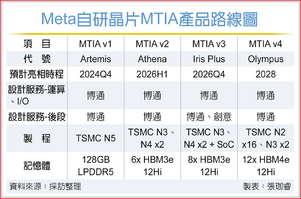 據悉,MTIA-2已在晶圓代工廠進行生產、預計今年上半年亮相,採台積電3奈米製程、CoWoS-S先進封裝打造,而運算、I/O等晶粒設計服務,則委由博通進行。法人透露,MTIA-3則預計在今年下半年亮相,屆時創意將參與後段封裝投片,有望挹注亮眼之營收表現。