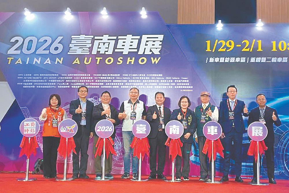 2026臺南車展即日起至2月1日,在大臺南會展中心盛大舉辦,聚集上百家汽、機車廠商代表,總計520格攤位,同場展示最新款汽車與摩托車系列產品,其中各新款重機,更是會場一大亮點。年年不缺席的汽車煞車來令片大廠南晃交通器材董事長鄭丞焜表示,同業藉由同台亮相,不但可嶄現府城業者相關領域各種實力,更可帶動臺南廠商知名度。