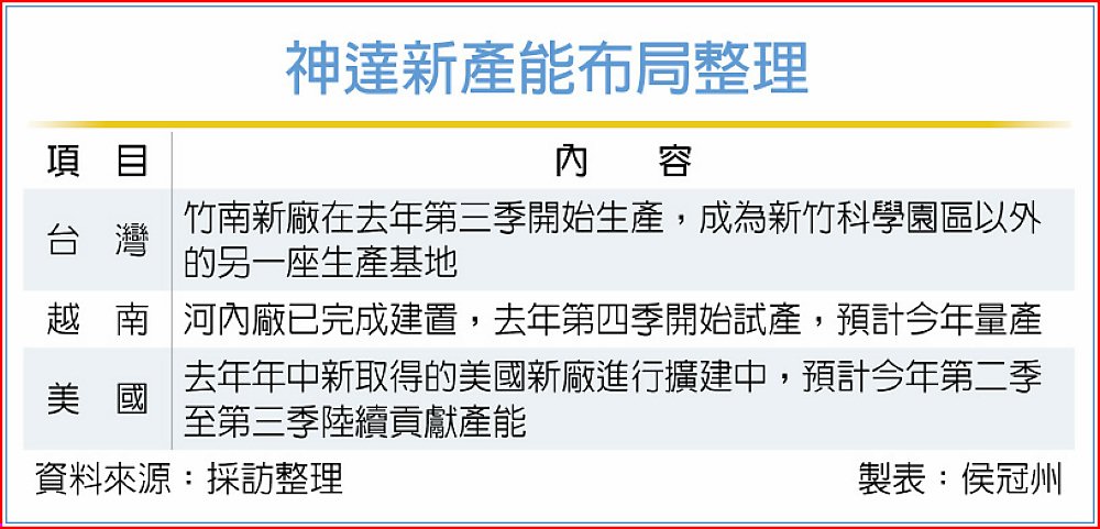神達先前透露,未來會持續擴大北美、亞太兩大地區的產能,且因應需求成長,預期今年資本支出會有比較高的金額,在合理規劃下進行產能擴張。