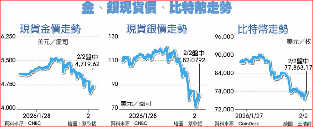 儘管華許6月接替鮑爾擔任主席,但仍引爆貴金屬賣壓,促使芝加哥商品交易所(CME Group)提高黃金和白銀期貨保證金,上海黃金交易也緊急出手調整保證金,防範市場風險。