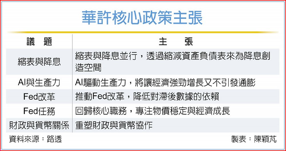 該報告將華許可能採行的路線稱為「實用貨幣主義」,也就是不再將政策利率視為唯一核心工具,而是透過量化緊縮(QT)回收市場流動性,逐步縮減目前約6.5兆美元的Fed資產負債表,以此抑制通膨壓力。