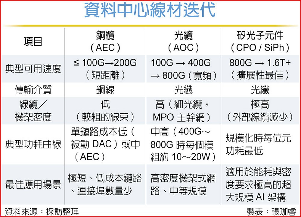 市場解讀,Meta大舉投資光纖,並非單一採購行為,而是AI計算架構全面升級的必然結果。相較銅線以電子訊號傳輸,光纖以光子傳輸,功耗可降低5~20倍,在GPU數量快速膨脹、電力成為最大瓶頸之下,光纖將愈來愈貼近運算核心,甚至未來可望取代機櫃內部銅線,進一步發展為「光電共封裝(Co-Packaged Optics)」。