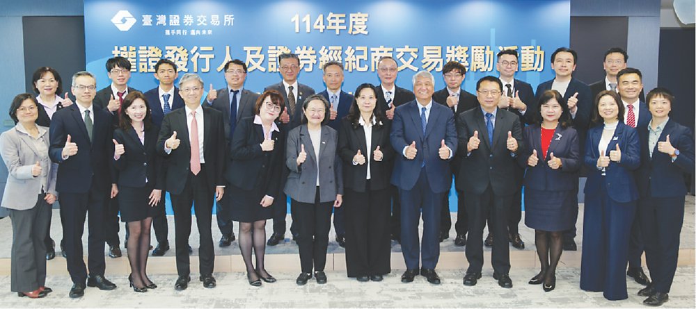 為表揚權證發行人及證券經紀商對權證市場發展貢獻及努力,證交所針對114年權證交易活絡、成交金額較高之發行人及證券經紀商營業據點,上周分別頒發「權值衝刺獎」、「權數效率獎」及「權民投資獎」等三個獎項。