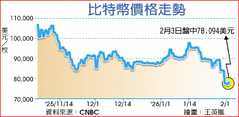 全球第一大加密通貨比特幣3日盤中挫低0.07%至78,094美元。數據供應商CoinGlass最新資料顯示,近日超過42萬名加密貨幣投資人遭清算,總損失金額達25.61億美元。