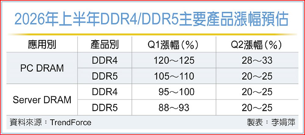 業界並傳出,華邦電近期已完成2026年第一季合約價協商,DRAM漲勢可望從2025年第四季一路延續至2026年第二季,連續三個季度節節攀高,甚至2027年新增產能也提前預訂一空。