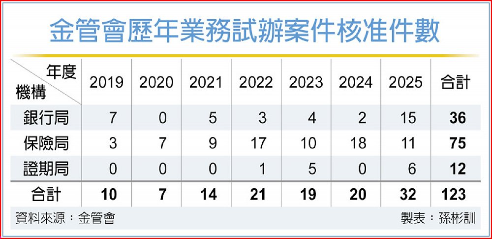 為鼓勵金融機構持續創新,金管會5日邀請三家試辦亮點案件業者現身說法,提供更創新、便利及包容的金融體驗及服務,其中兩案為「碎片化保險」,在市場相當吸睛。金管會金融市場發展及創新處處長林羲聖指出,2025年度已核准32件試辦案件,創歷年新高,試辦機制有效促進金融創新發展。金管會是在2024年10月29日發布「金融業申請業務試辦作業要點」,放寬金融業者可進行業務試辦的範圍。