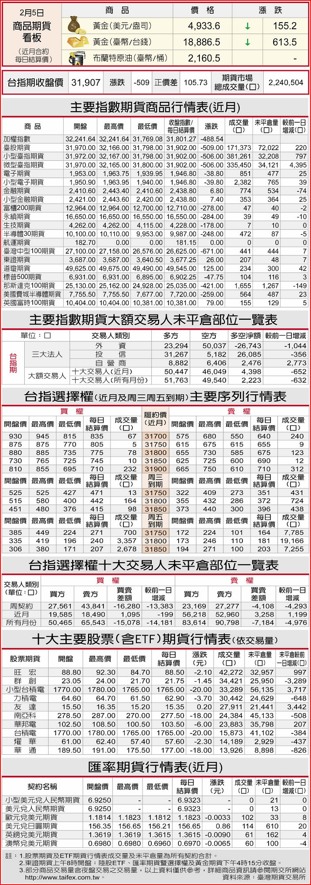 期貨商品行情表