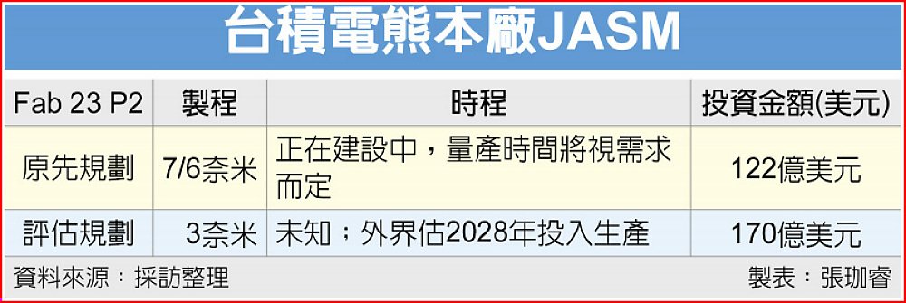法人指出,熊本廠除承擔日本半導體產業復興政策的重要角色外,二廠更將導入3奈米製程,投資規模將由原本預估的122億美元調升至170億美元,二廠產能預計於2028年開始量產,有助台積電貼近日系客戶與在地供應鏈體系。