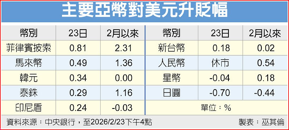 匯銀主股認為,儘管面對市場不確定性,新台幣仍順勢走揚。後續要留意川普計畫推動全球15%關稅方案,對市場影響需持續評估。