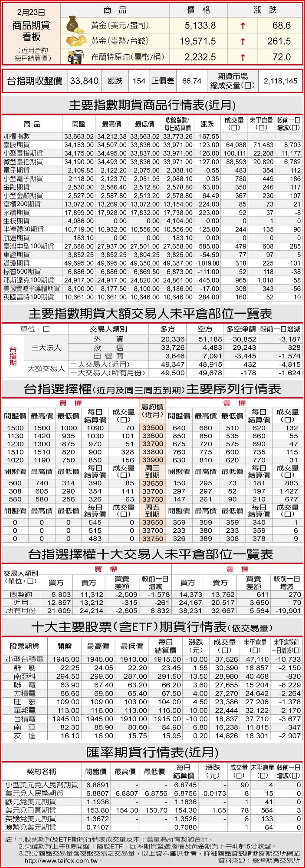 期貨商品行情表